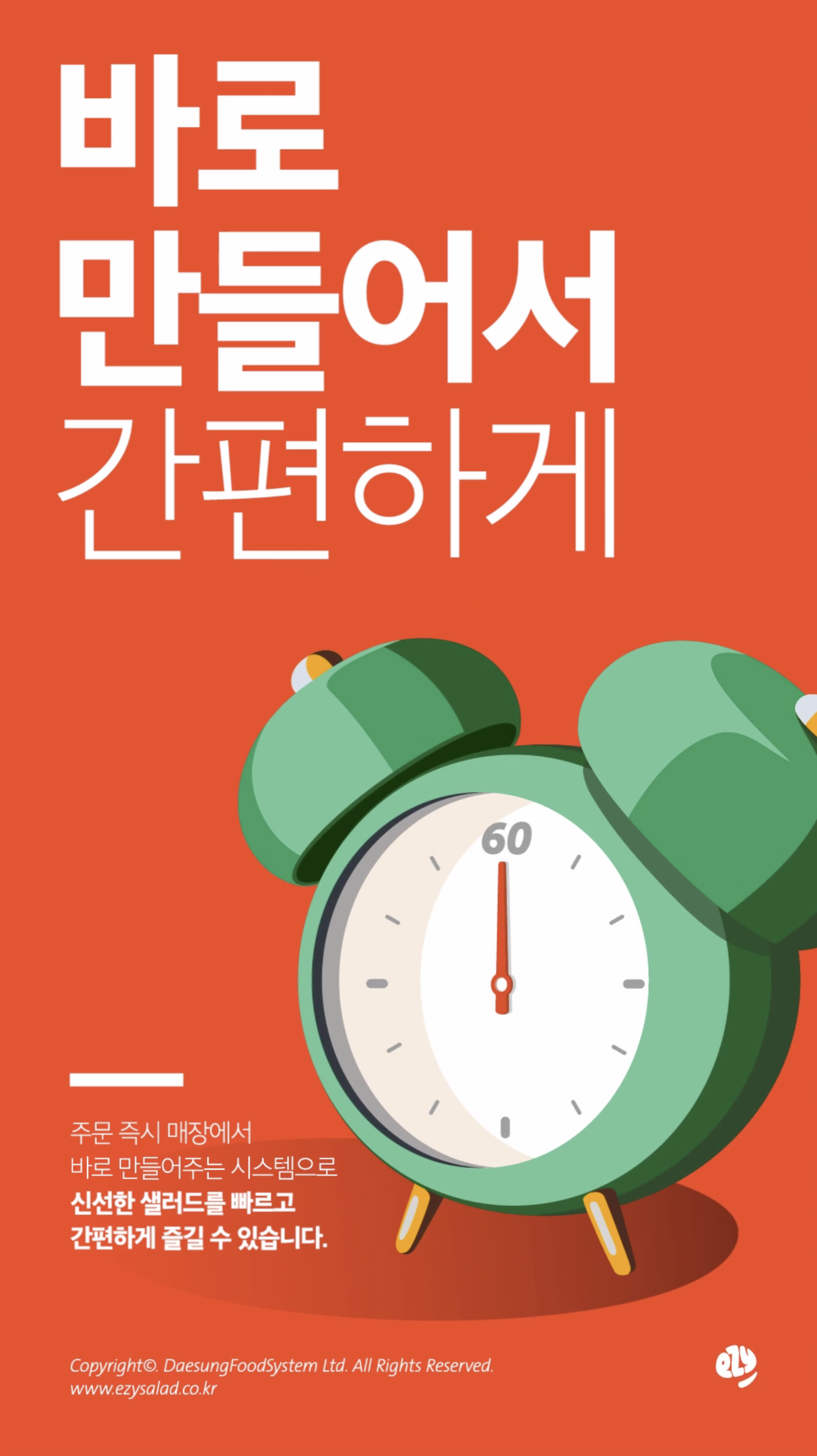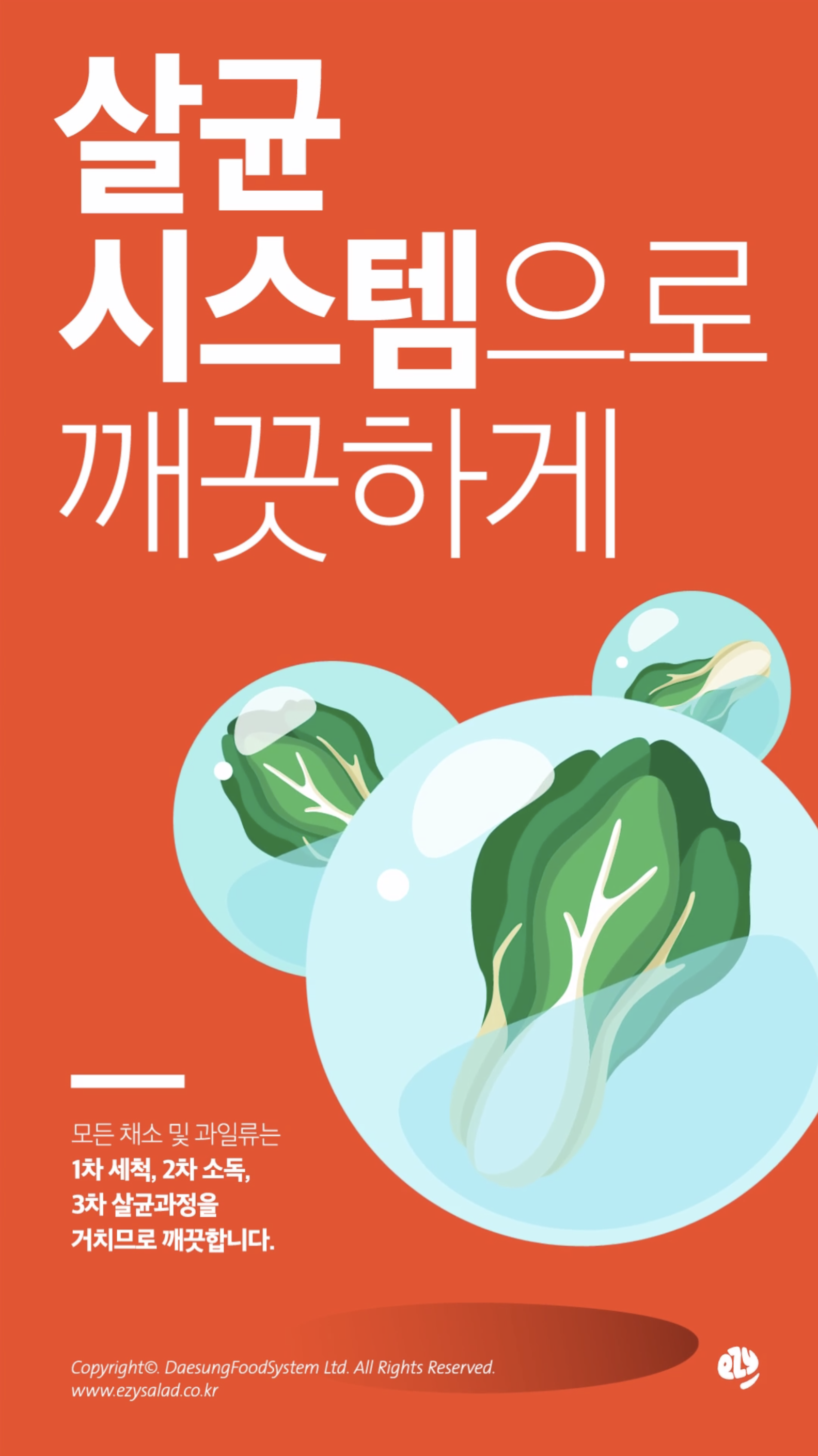 샐러드의 제작 및 배송에 관한 내용과 모든 메뉴를 일러스트레이션으로 영상을 만들어 소비자들이 웹사이트, SNS뿐만 아니라 오프라인 매장의 디스플레이 모니터로도 쉽고 재미있게 정보를 얻을 수 있도록 하였습니다.