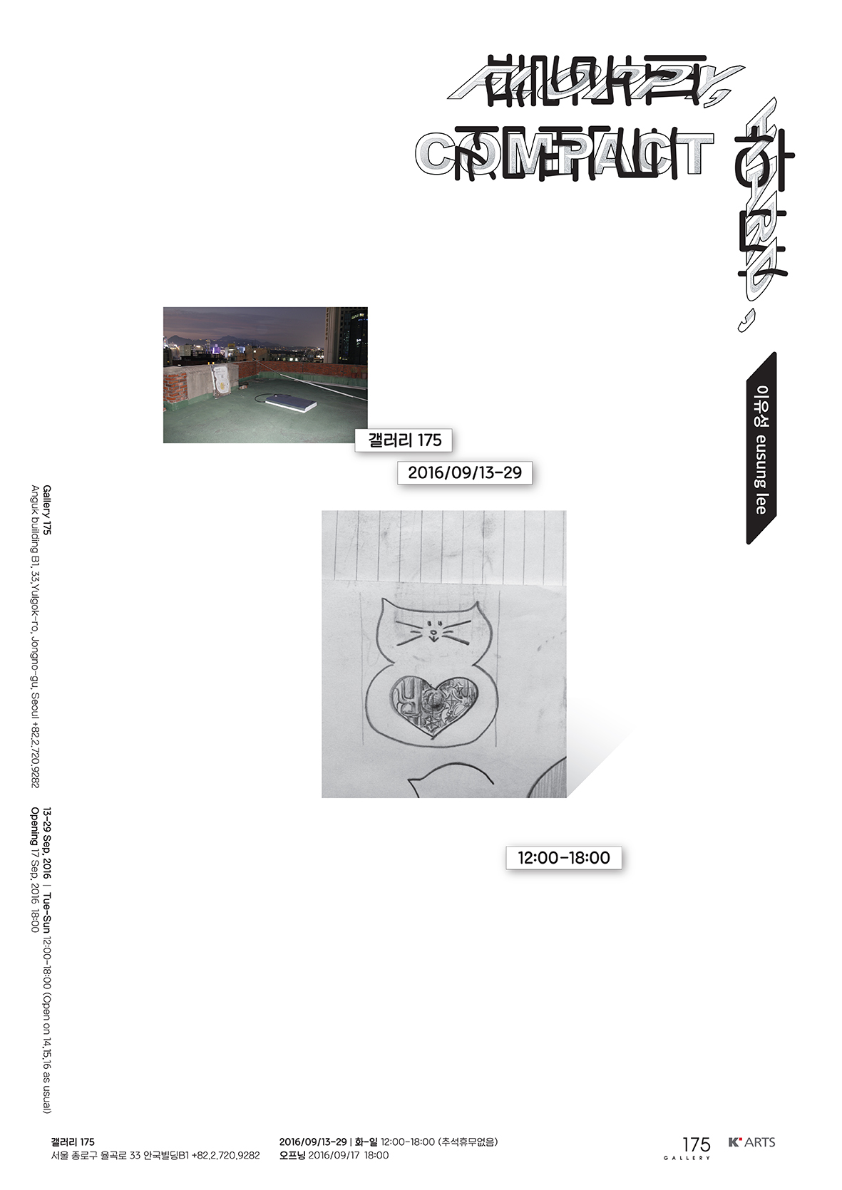 이유성의 2016년 개인전<플로피, 하드, 컴팩트>의 포스터, 배너 및 리플렛 디자인.
