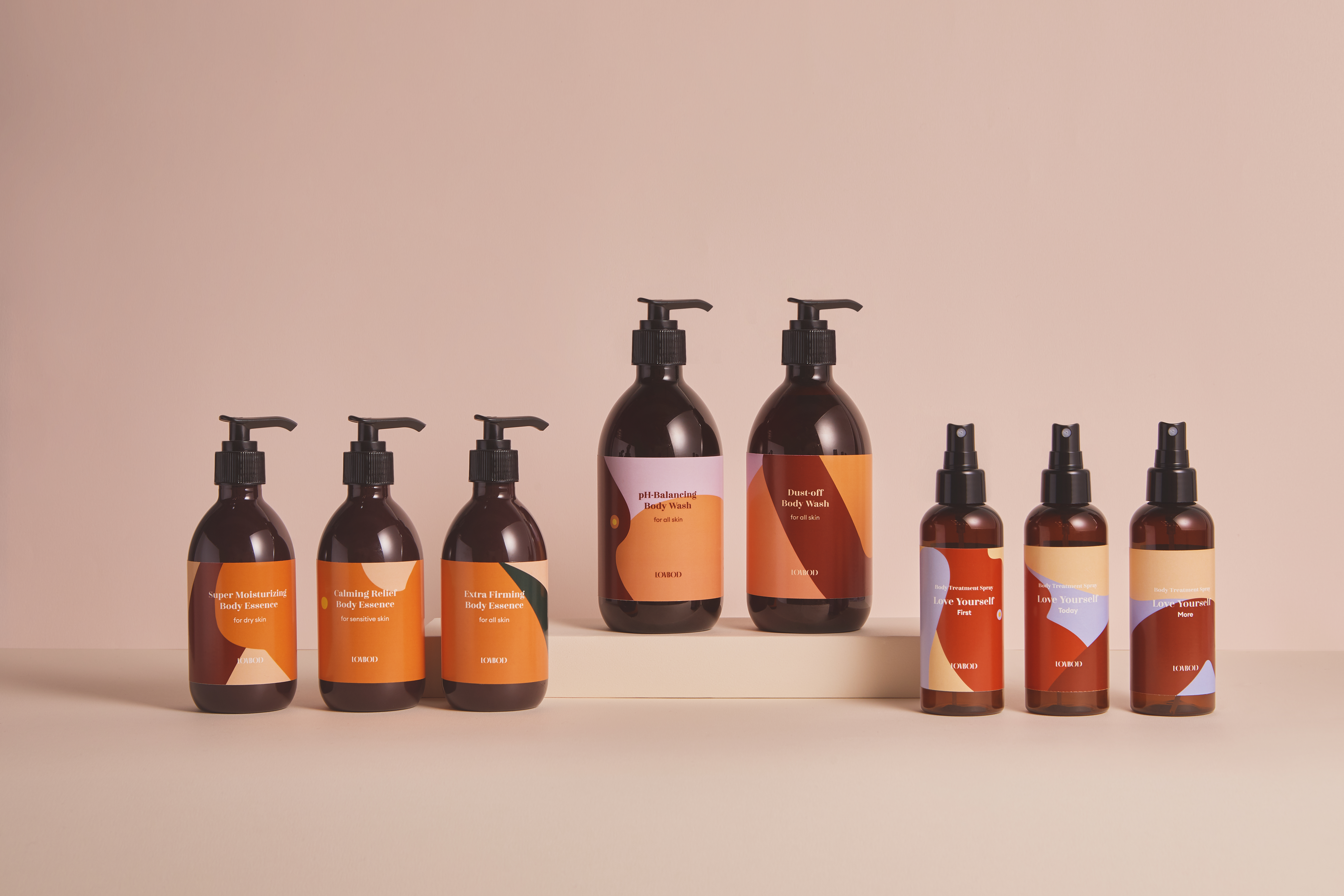 Packaging design for Body Wash, Body Essence and Body Treatment Spray by LOVBOD, a brand specializing in total body care.