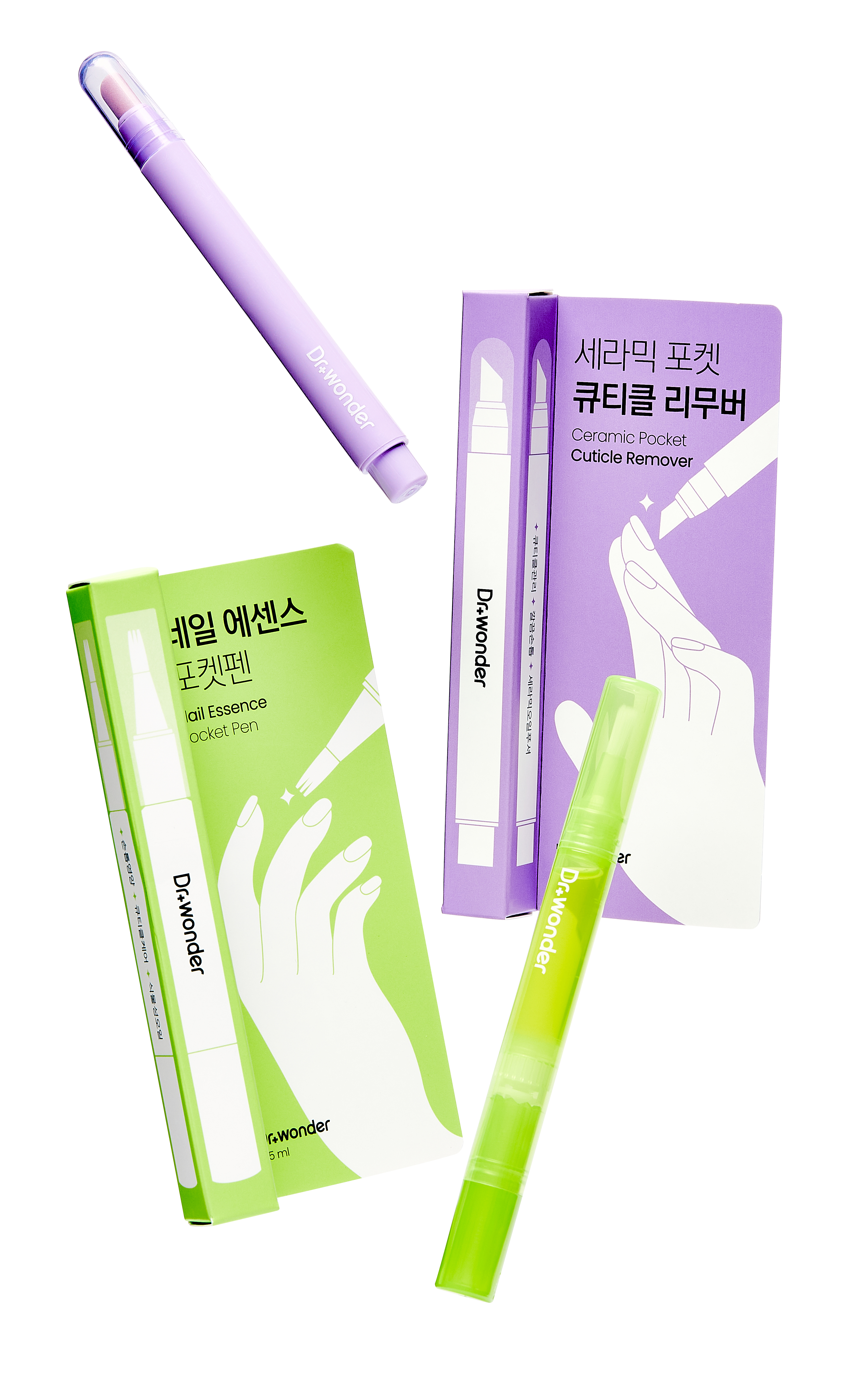 퍼스널케어 브랜드<Dr.wonder>의 네일 리무버, 에센스펜 패키지디자인 리뉴얼.