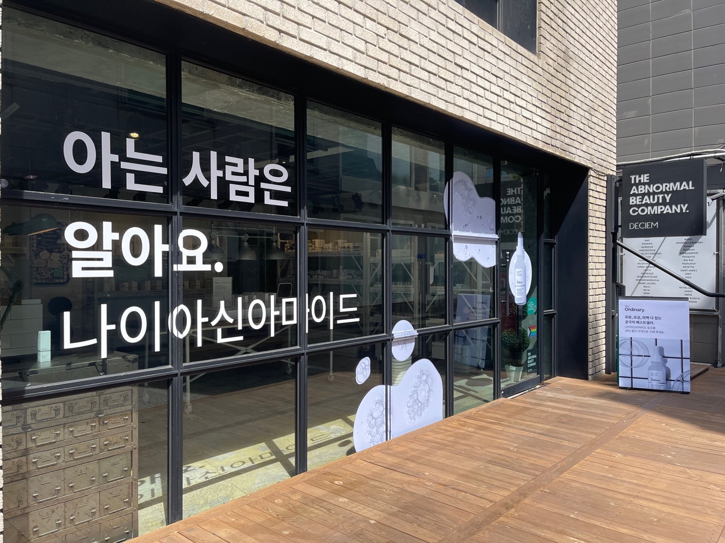 생소한 이름의 “나이아신아마이드"를 매장 전면에 강조하여 매장을 지나는 모든 잠재 고객들에게 제품(원료)명을 각인시키고자 하였습니다.