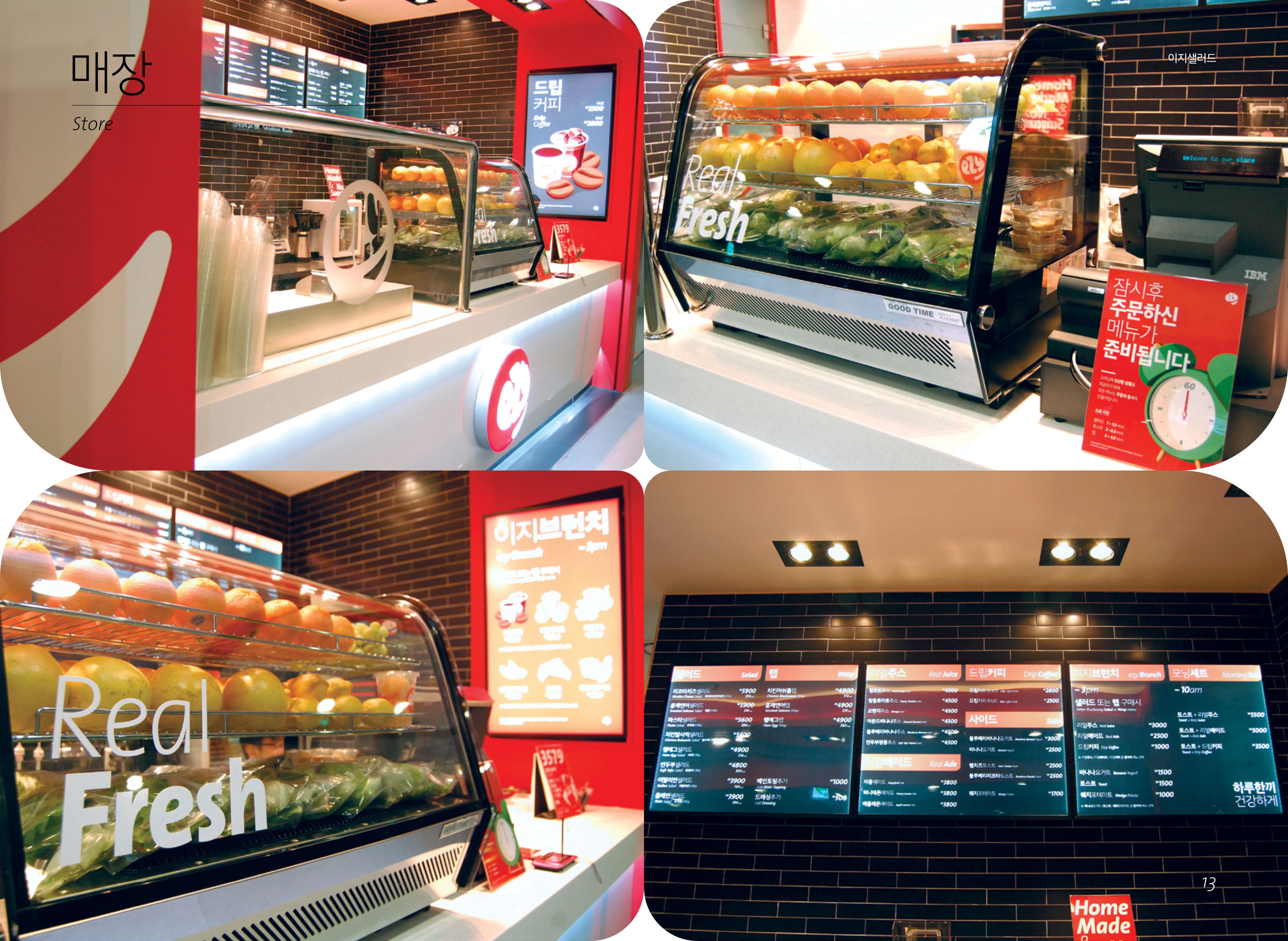 쉽고 간편하면서 건강하게 샐러드를 즐길 수 있는 샐러드 프랜차이즈 <이지샐러드>의 스토어 디자인.